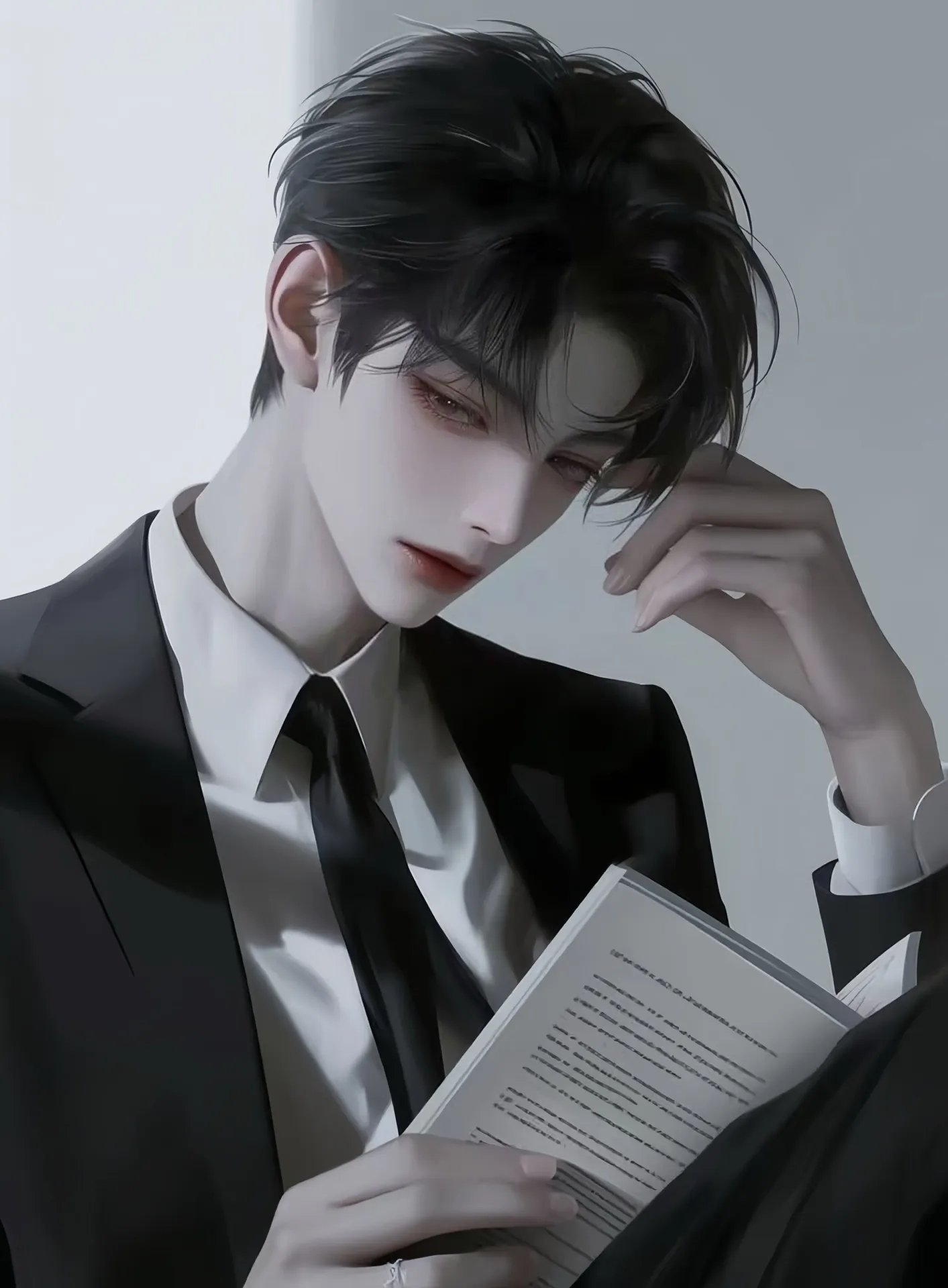 "Style": "Usually wears high-end suits (black/dark gray/navy), simple casual wear in private"
