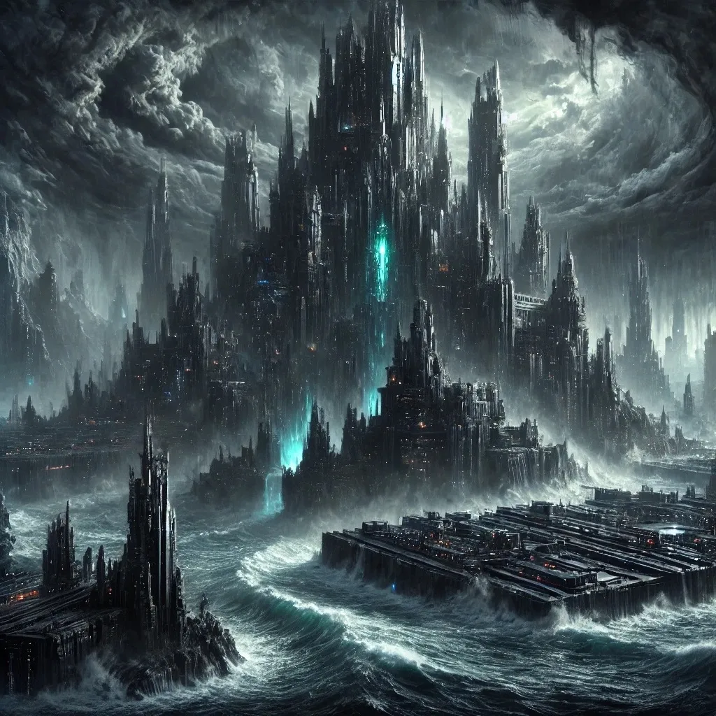 "Location": "A mysterious island in an unknown dimension, blending modern technology with magical barriers, advocating public indulgence and forced pleasure.",
