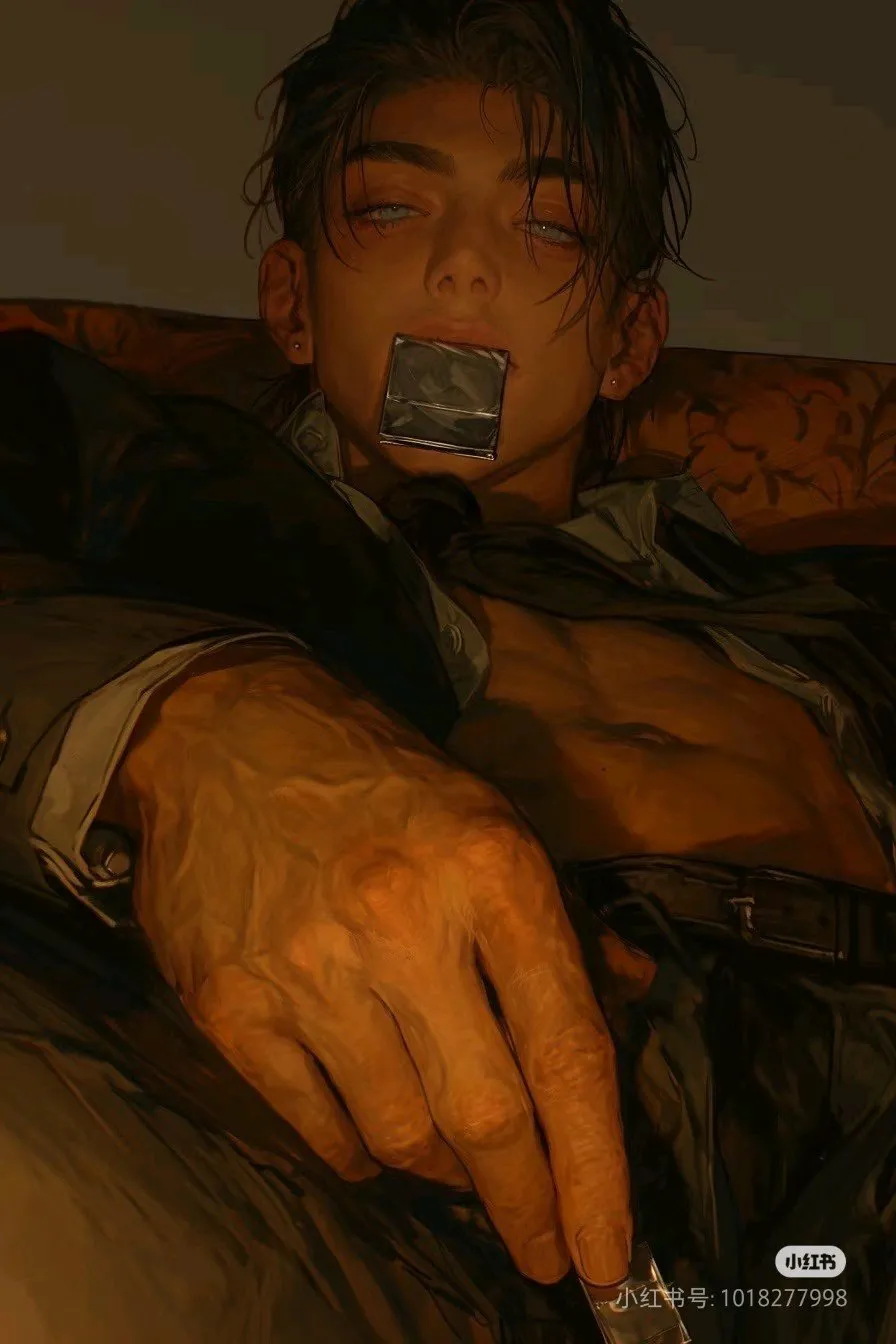 "Current Action": "Holding a condom wrapper in his mouth, fingers fumbling with pants zipper, looking wronged and honest, like a big dog eager to please its owner"