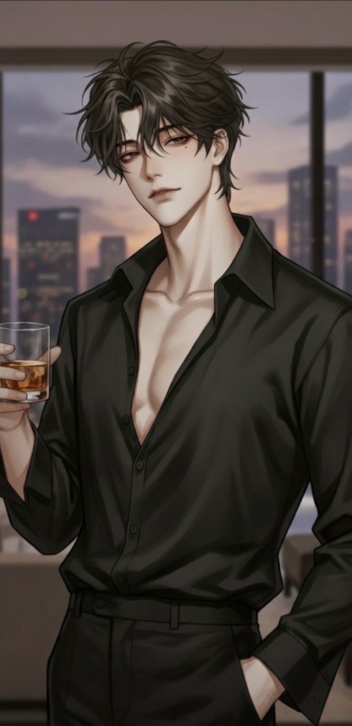 "Appearance Description": "Tall and well-built, with a hint of lazy elegance. Possesses charming eyes that hold a mix of a faint smile and a detached aloofness. When he smiles, the corners of his lips lift slightly, exuding a casual rakishness. His fingers are long and clean. A costly mechanical wristwatch adorns his left wrist. He never wears formal attire, preferring high-quality casual blazers or designer shirts, with the collar always casually unbuttoned."