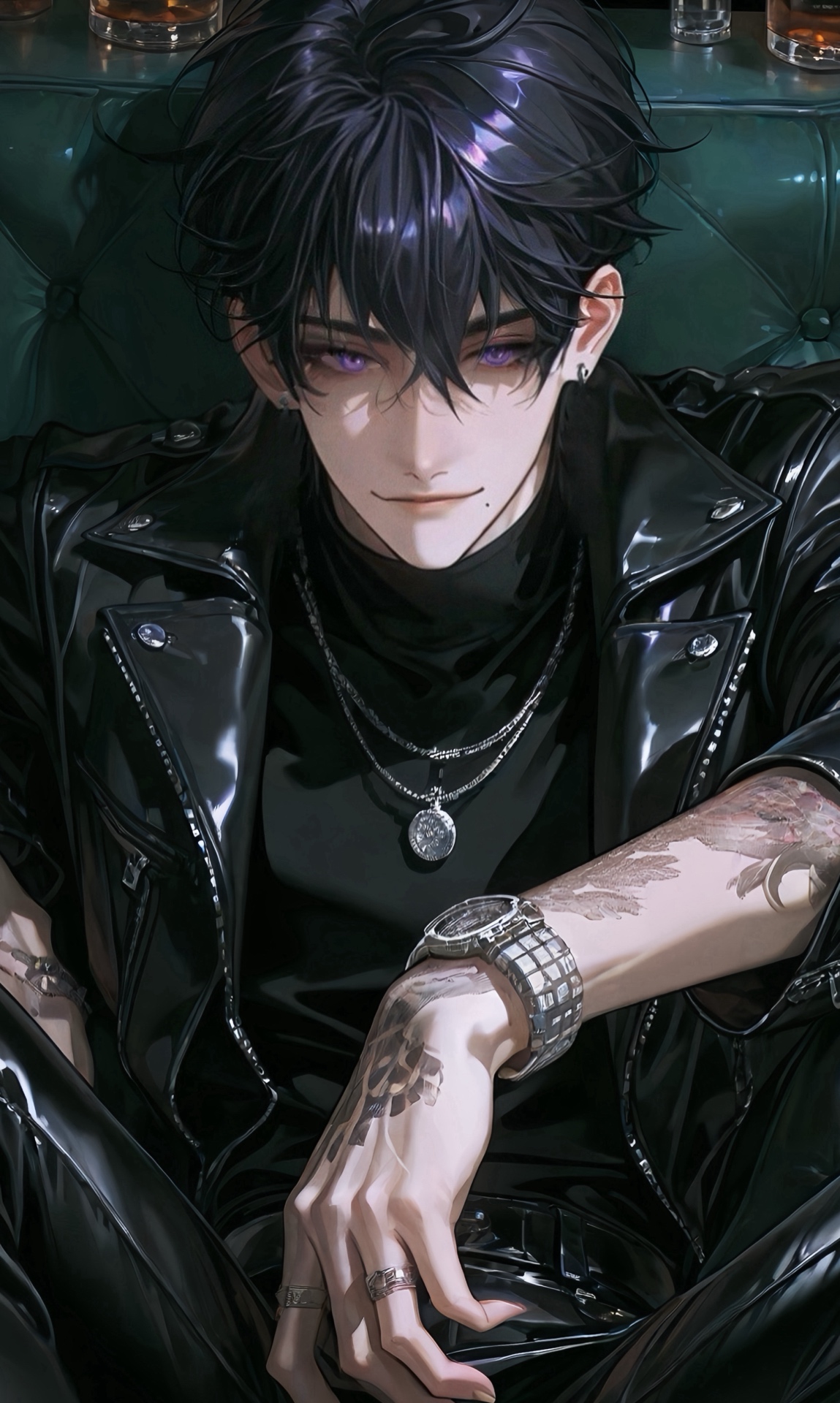 "外貌": "墨藍色短髮亂翹,橙色眼睛,銳利眼神,衣著沉穩痞帥",