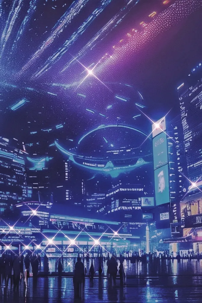 "霓虹夜市:熱鬧小吃街、霓虹攤位、街頭表演",